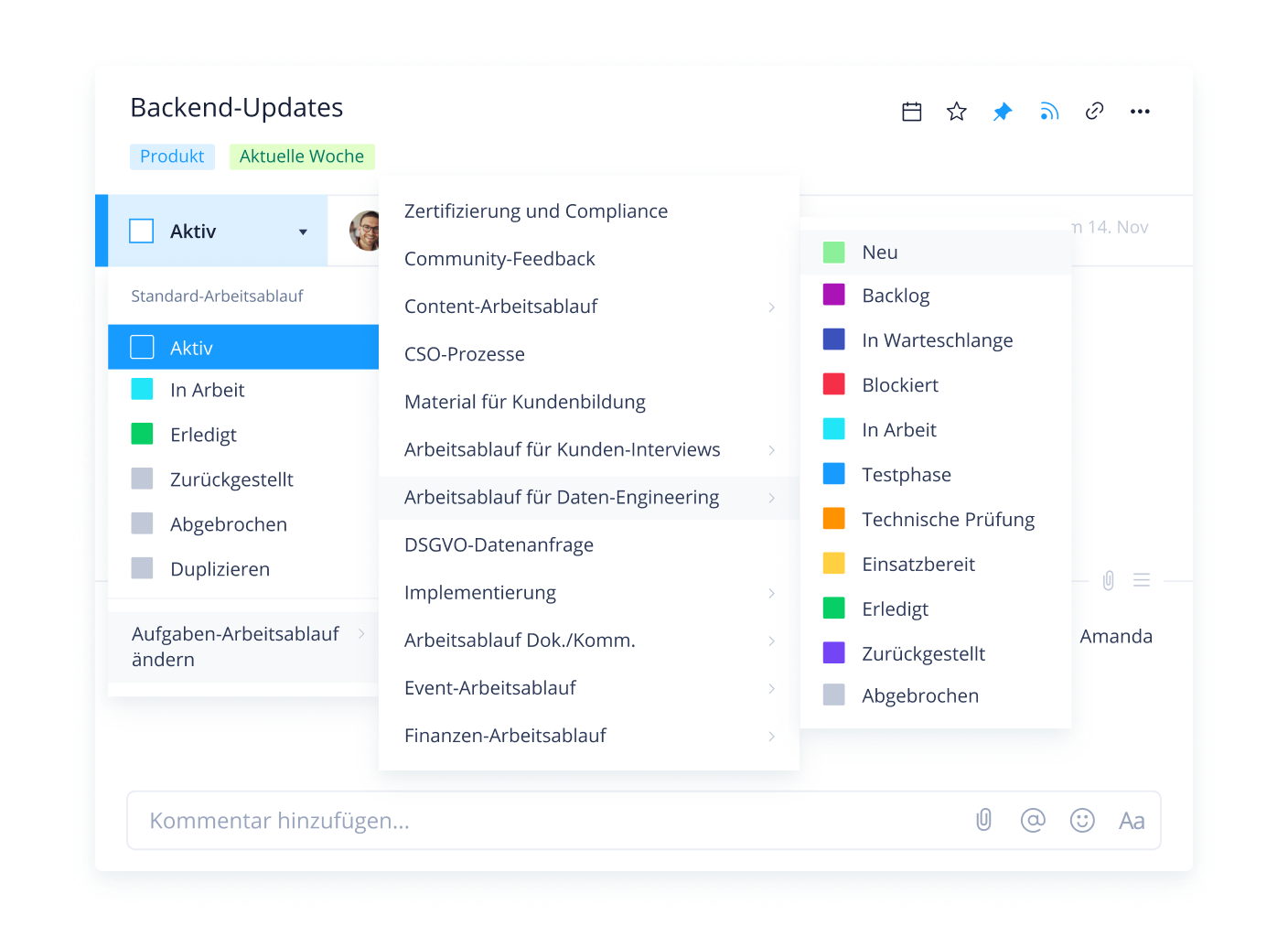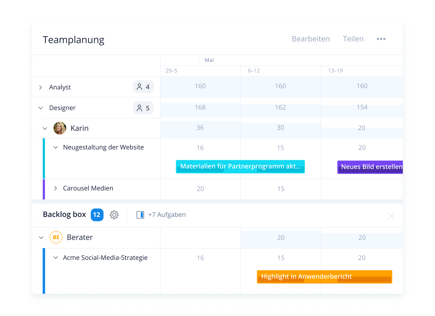 Gliedern Sie große IT-Projekte in überschaubare Phasen, weisen Sie Aufgaben und Deadlines zu und überwachen Sie den Fortschritt.