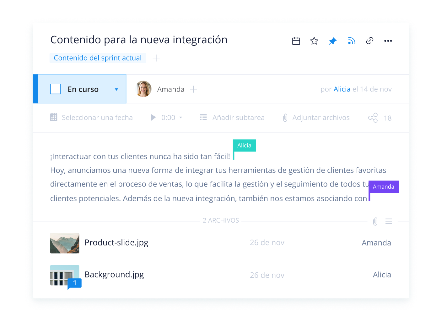 Convierte los proyectos en elementos procesables, asigna tareas a las personas adecuadas y visualiza las fechas de entrega en una vista de cronología.