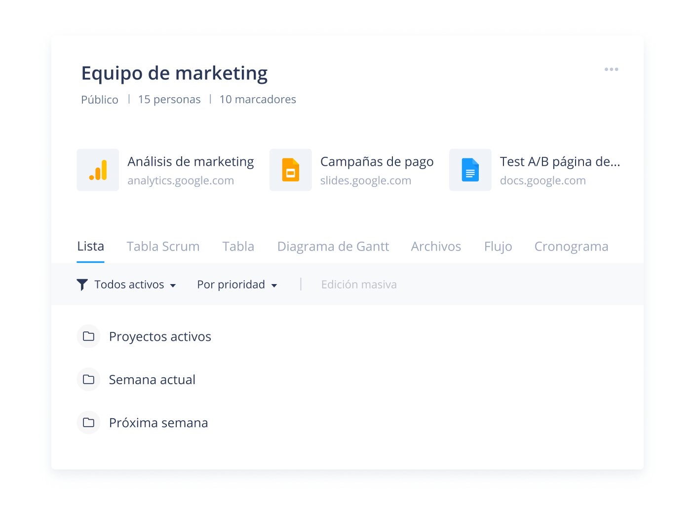Sabemos que pasar de una aplicación a otra tiende a ralentizar el progreso del proyecto. Con nuestras más de 400 integraciones, puedes beneficiarte de Wrike sin tener que abandonar las herramientas a las que estás acostumbrado.