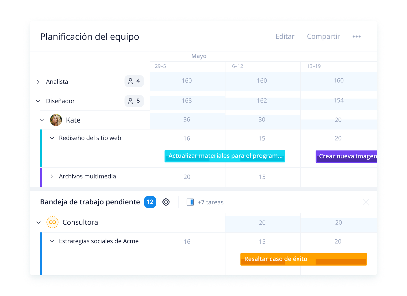 Divide proyectos de TI gigantescos en fases manejables, asigna tareas y fechas de vencimiento, y realiza un seguimiento del progreso.