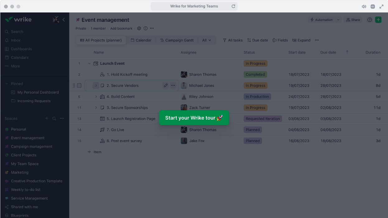 Make your path to product launch stress-free. As the best marketing project management software, Wrike helps you optimize workloads, align resources, and monitor your go-to-market progress.