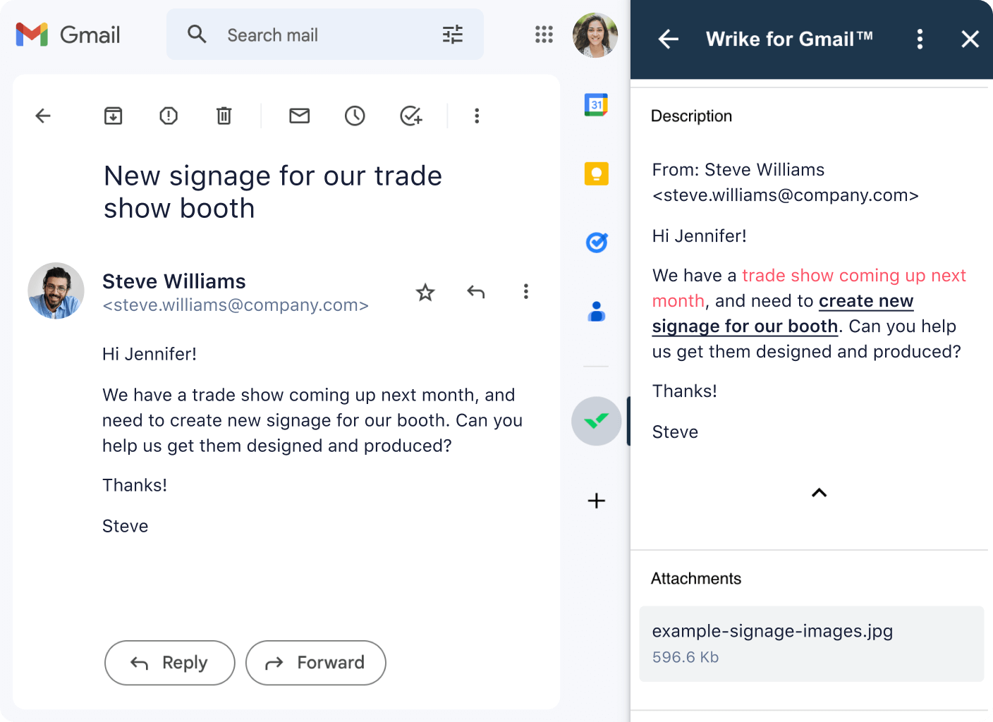 - Visualisez d'autres informations de la tâche et effectuez des mises à jour dans Gmail ou Wrike