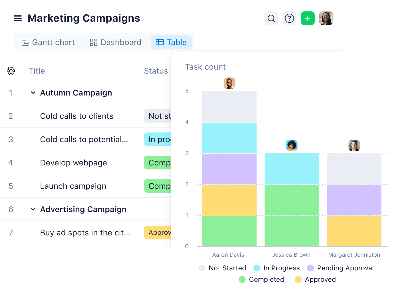 Visualize your priorities in a way that suits you — switch between Kanban boards, Gantt charts, timeline view, and more.