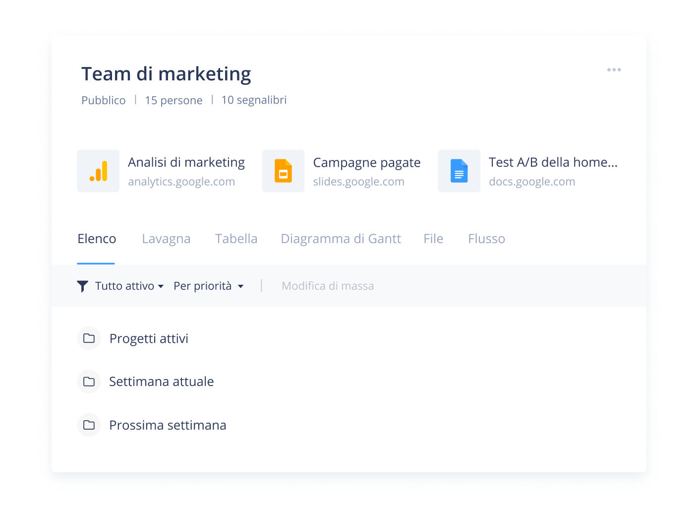 L'unica piattaforma per la gestione del lavoro creata per professionisti del marketing che ti aiuta a trasformare il lavoro in prestazioni.