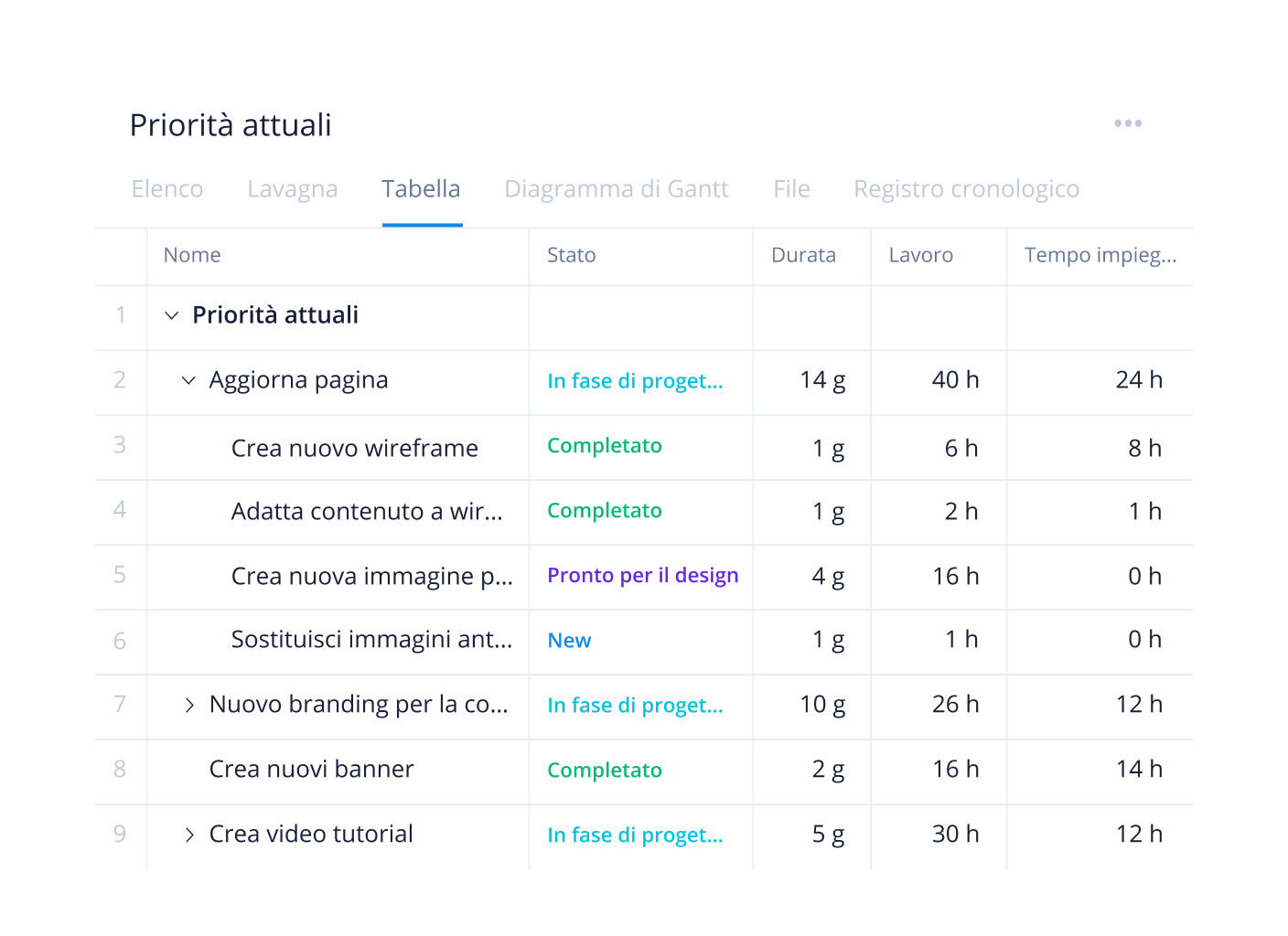 Pianifica i progetti di ogni cliente alla perfezione con i nostri modelli per le migliori pratiche, dotati di funzionalità per tracciamento dei tempi, report ed altro.