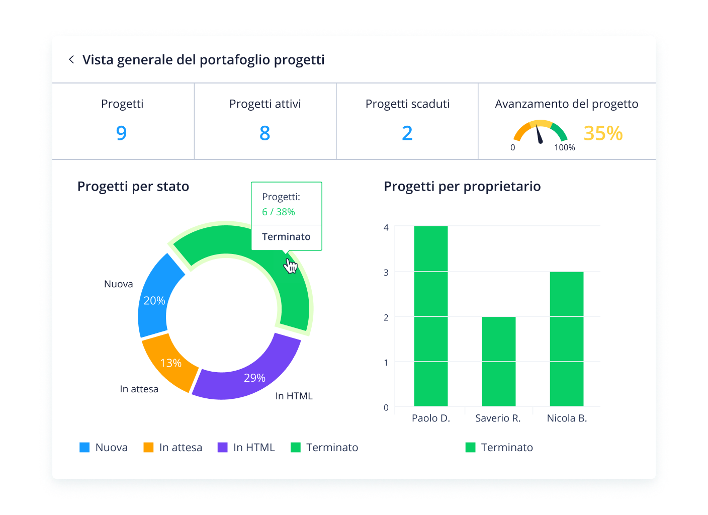 Soddisfa i clienti con progetti completamente trasparenti, aggiornamenti in tempo reale e report approfonditi.