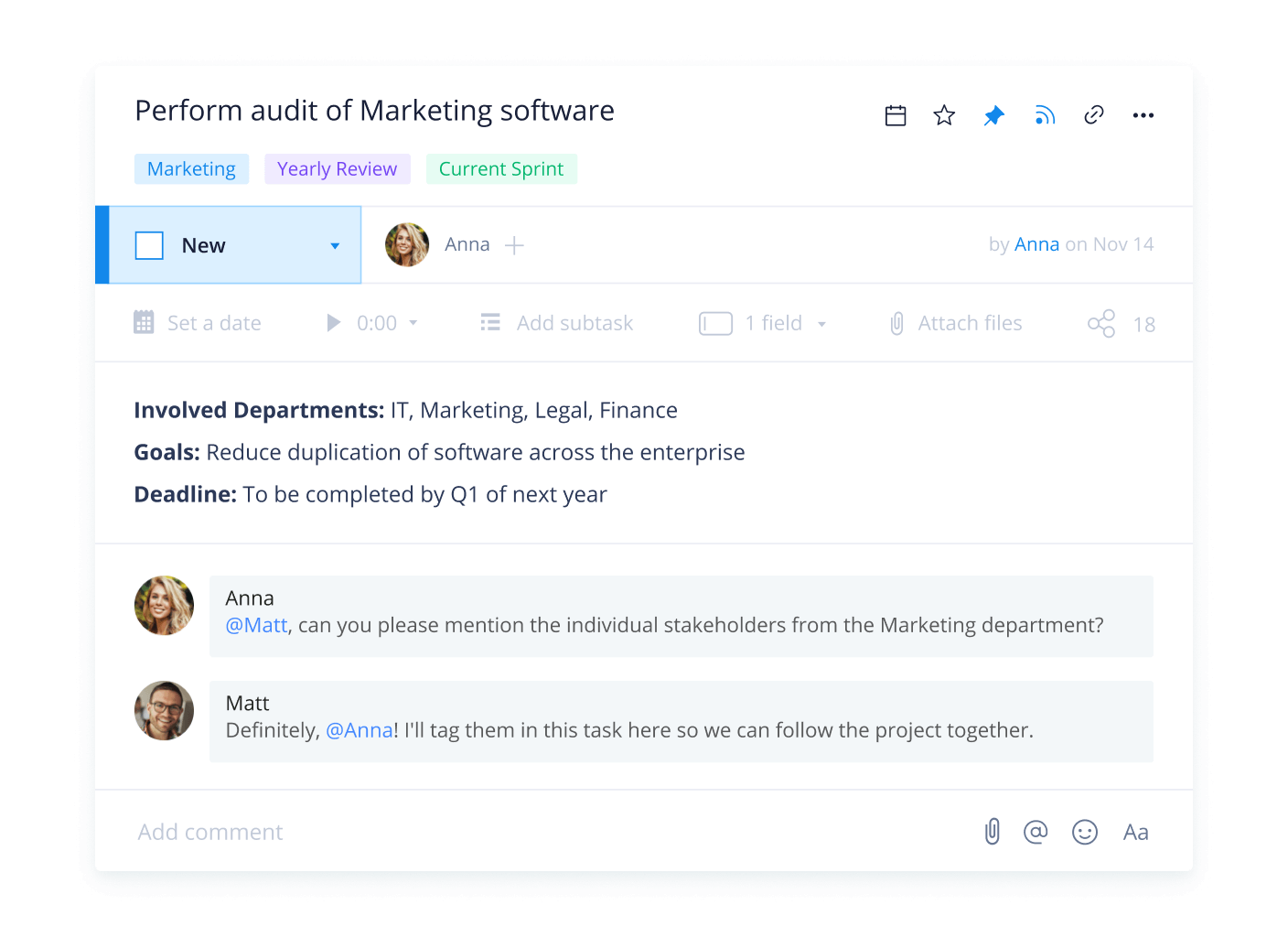 Assegna facilmente la proprietà di progetti e attività in modo da poter raggiungere i tuoi obiettivi e produrre lavoro della migliore qualità rapidamente.
