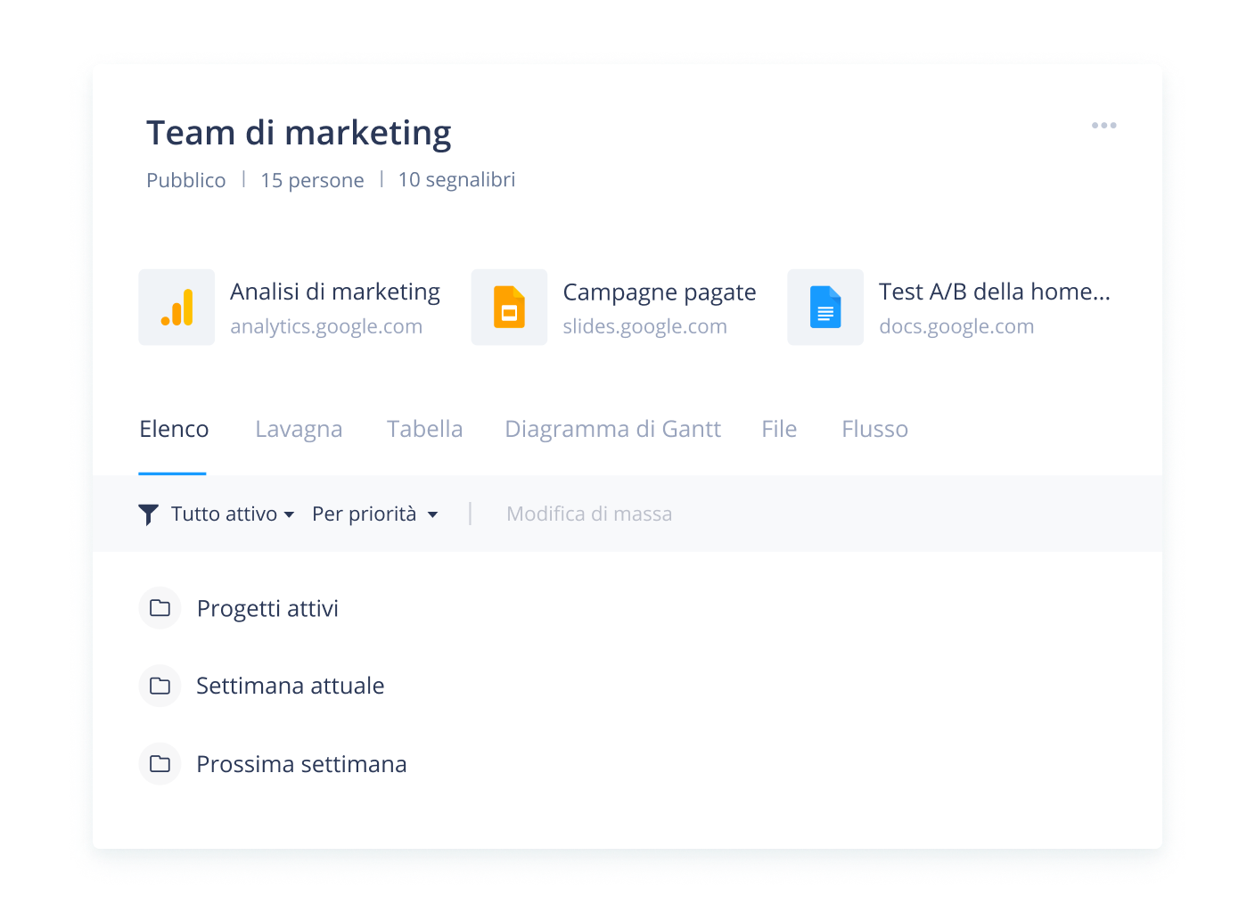 Gestisci tutti i tipi di progetti con lavagne e tieni traccia dell'avanzamento con report automatici e personalizzabili.