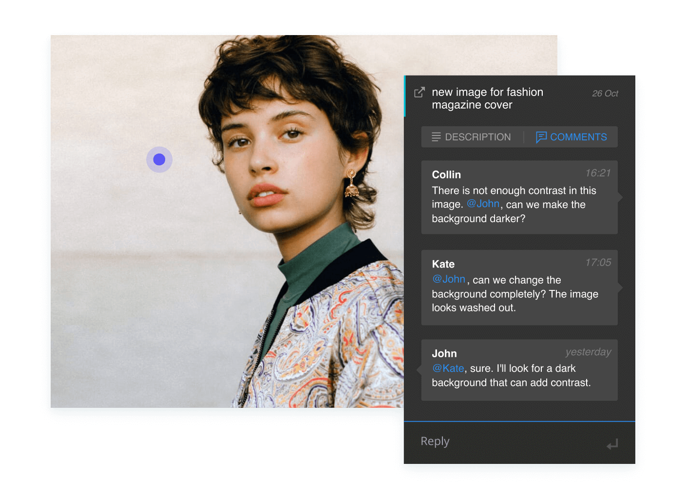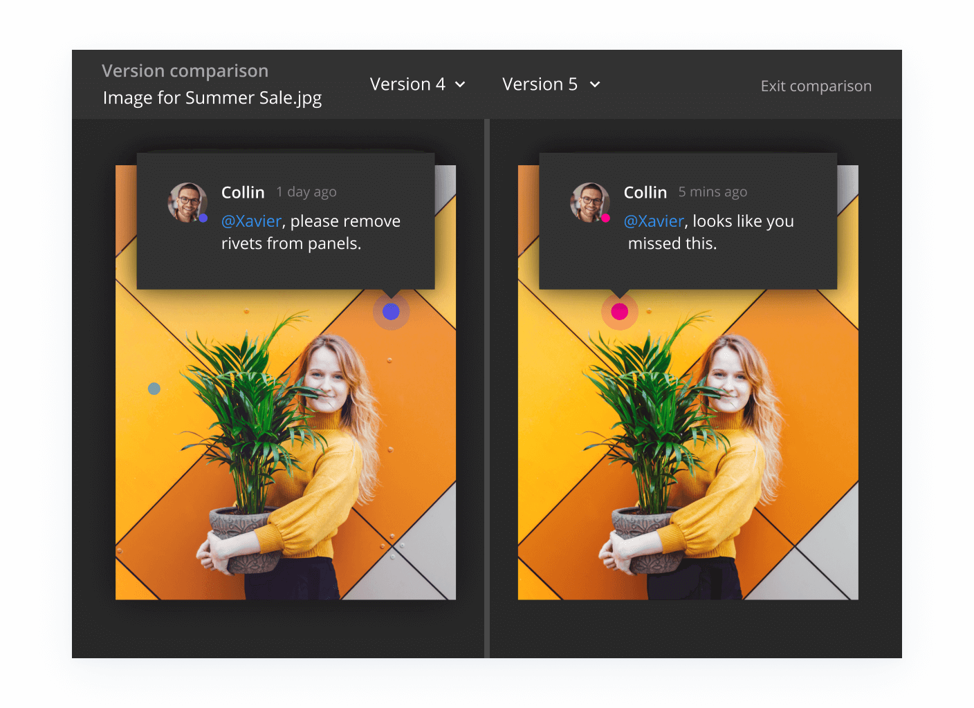 Clarify feedback by pinpointing exactly where something needs to change. Tag stakeholders for quick feedback and approvals, getting assets live faster.
