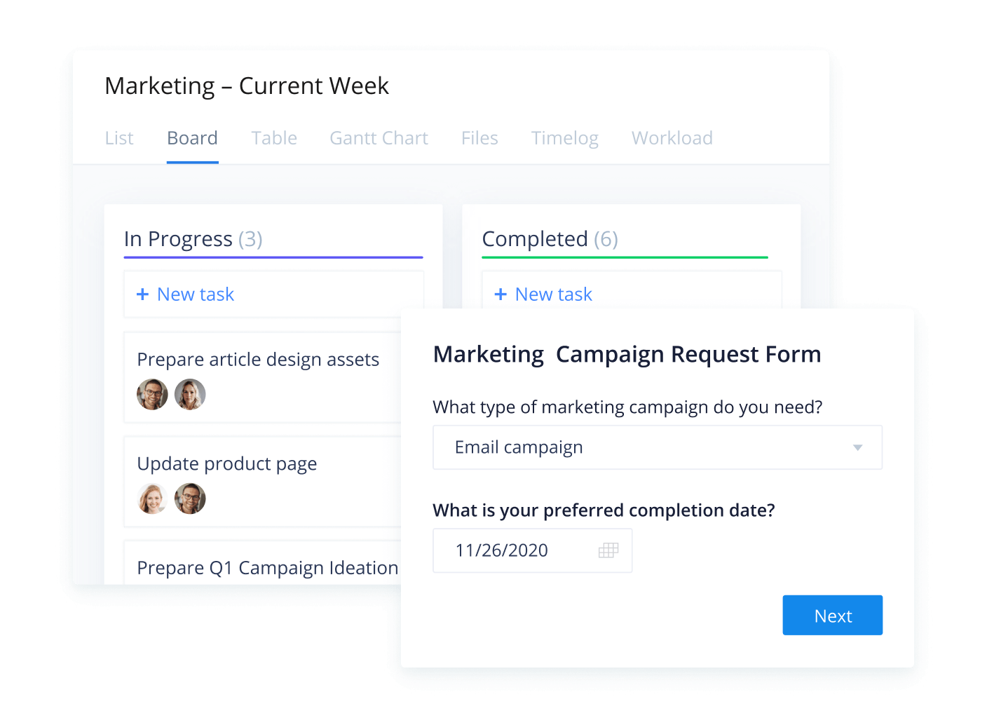 Wrike’s change request forms for project management come with an intuitive builder that allows teams to custom-build request forms depending on their needs and the information they need to capture.