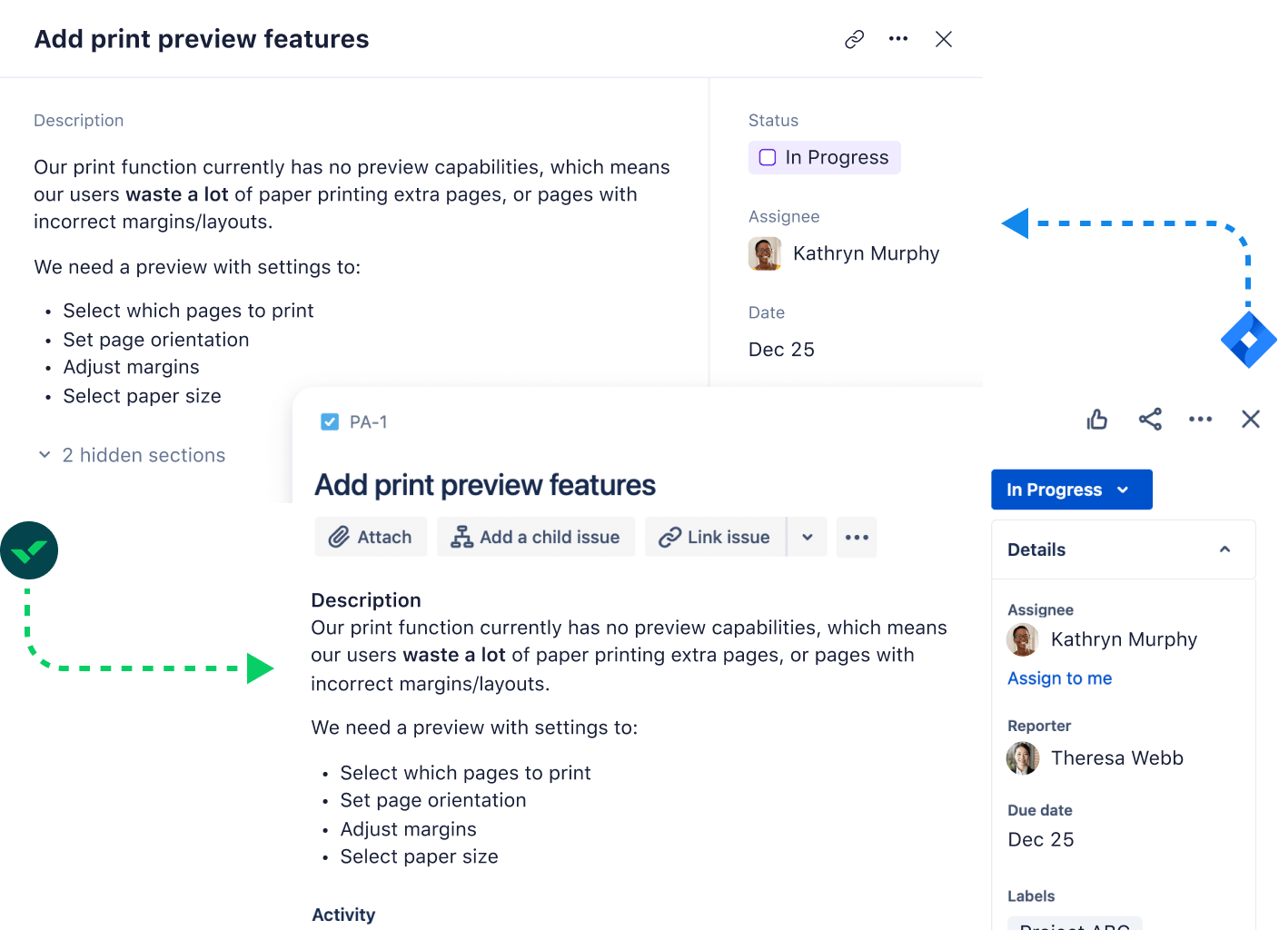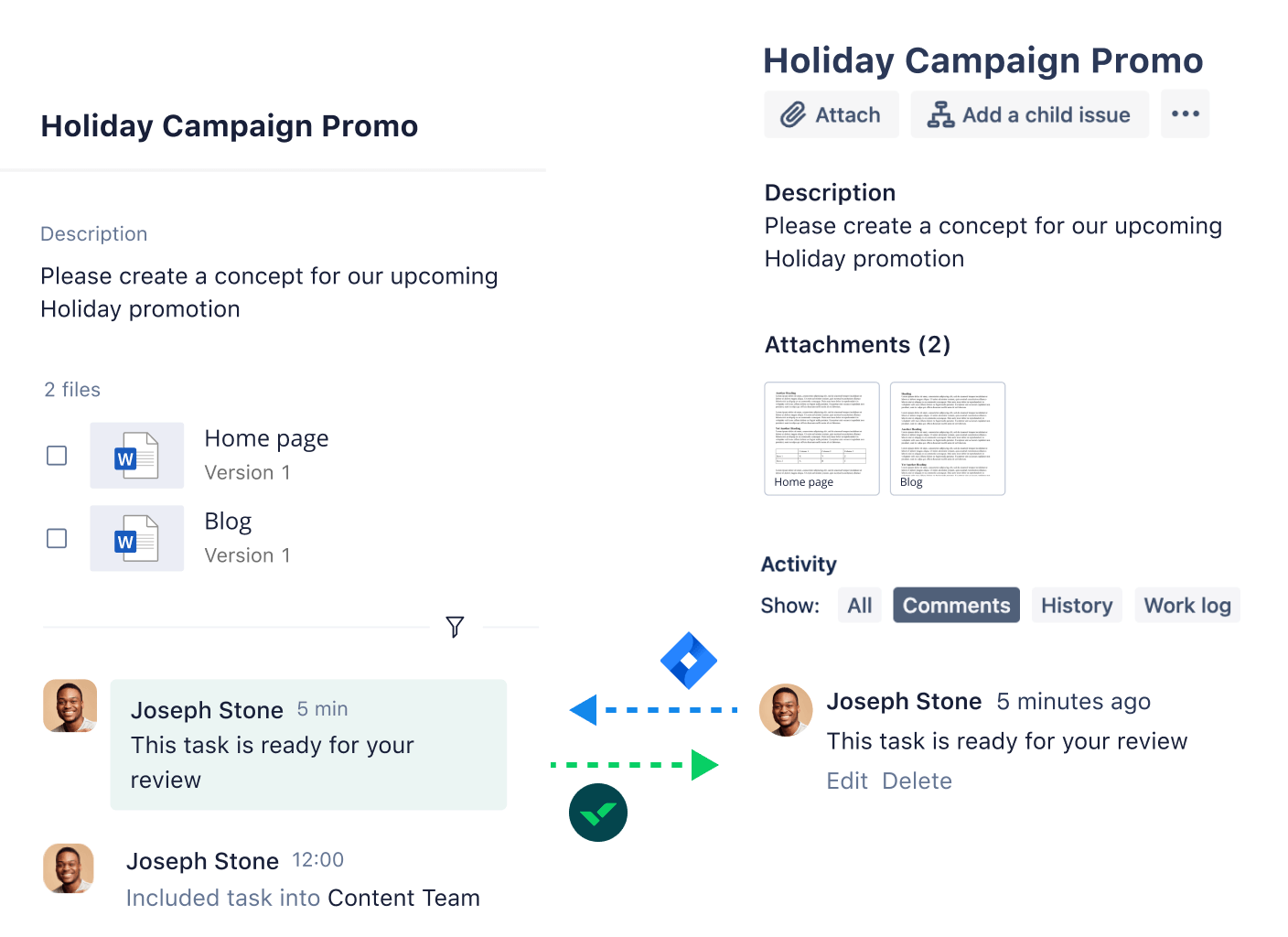 Yes! You can not only create Jira tasks within Wrike, but you can update existing tasks, including their title, description, due date, and more. Comments are synced between the two platforms automatically, so everyone stays on the same page at all times.